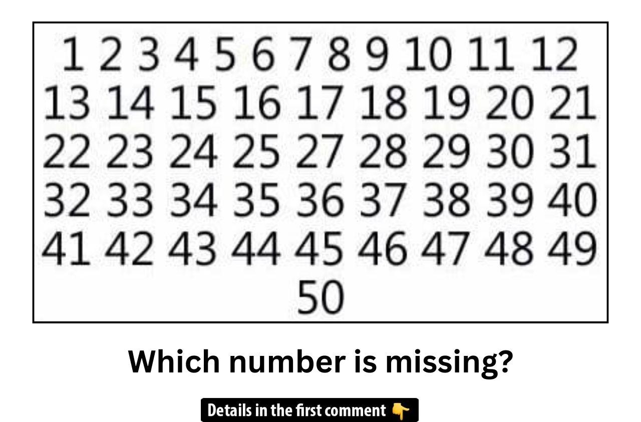 Get ready to put your brain to the test with this number puzzle! As you look at the sequence, one number is noticeably missing. Can you identify which one it is? It’s a simple yet fun challenge that’ll make you pay close attention to the details. Get ready to spot the gap and find out why the missing number is the key to completing the sequence! Ready to test your skills? Keep reading and let’s solve it together!