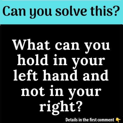 Here’s a fun riddle for you to solve: “What can you hold in your left hand and not in your right?” It sounds easy, right? But there’s a twist! Take a moment to think and then share your answer in the comments below. Let’s see who can crack it first! Ready for the challenge? Let’s get started!